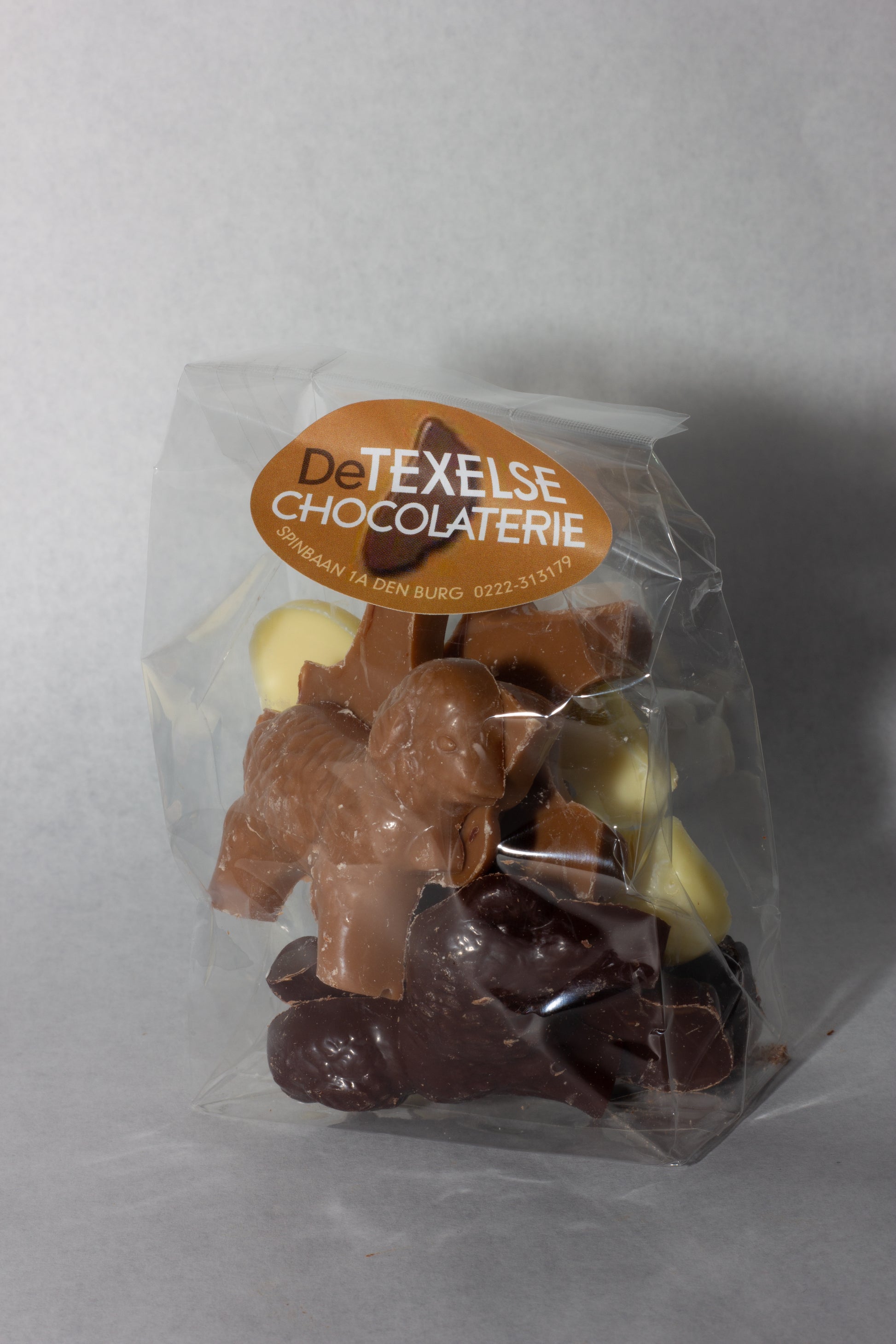 Schafe geformt aus Milch-, weißer und dunkler Schokolade