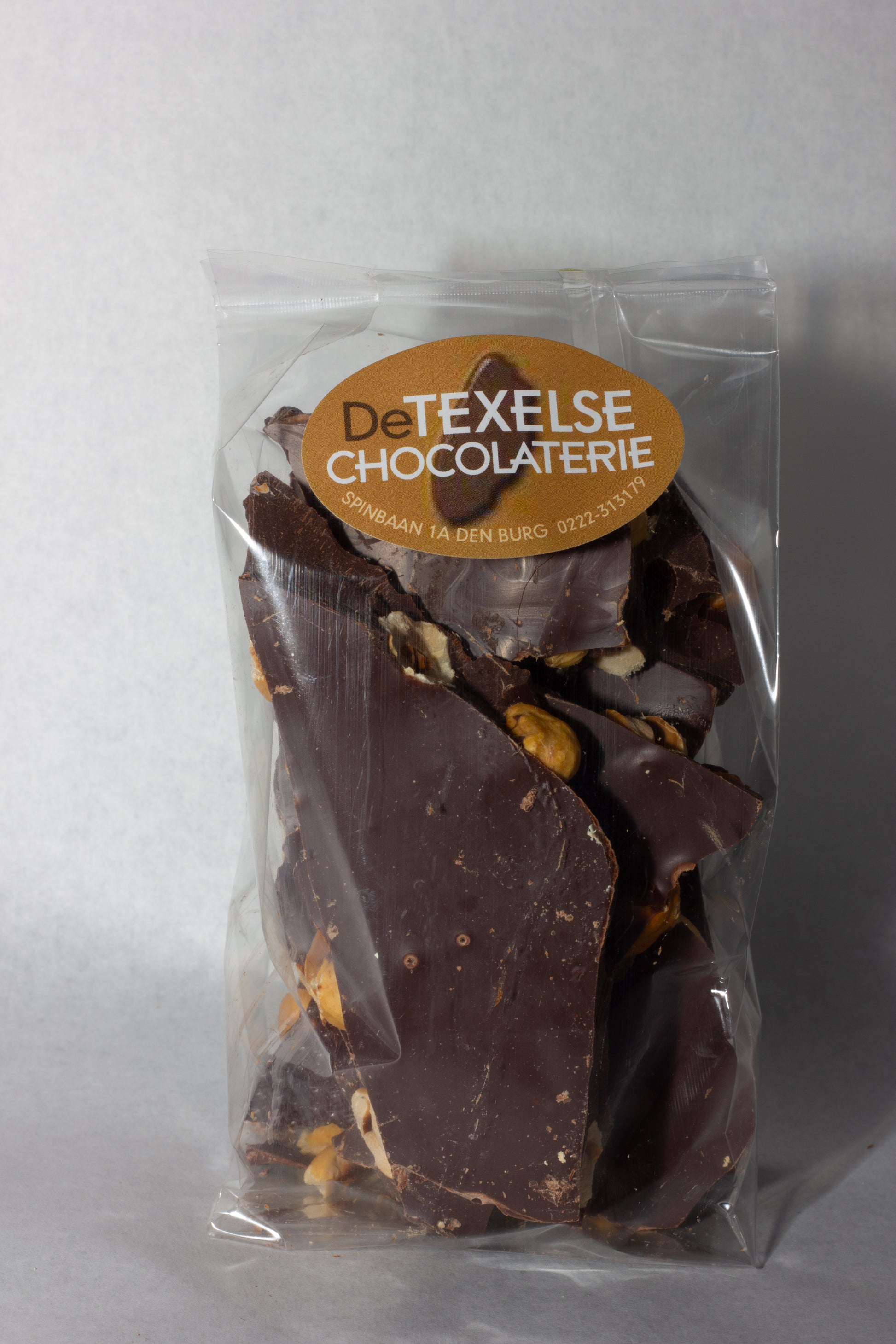 De brokken zijn gemaakt van hele hazelnoten in een pure chocolade, de chocolade bevat een cacaopercentage van 54,4% en heeft een bittere en intense cacaosmaak. De brokken hebben een lekkere bite door de zelf gebrande hazelnoten.